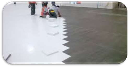 Self leveling mortar is used as a coating to create flat and smooth surfaces, correcting any initial defects that it may have had.